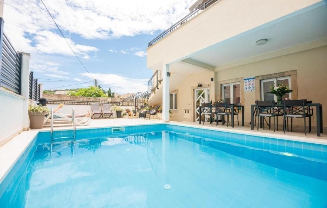 3 Sterne Villa Vizmeg bietet Meerblick, eine ruhige Lage, Terrasse und Balkone, komfortable Wohlfühlzimmer, moderne Bäder, WLAN, Klimaanlage sowie einen schönen Garten- und Außenbereich in Strandnähe.